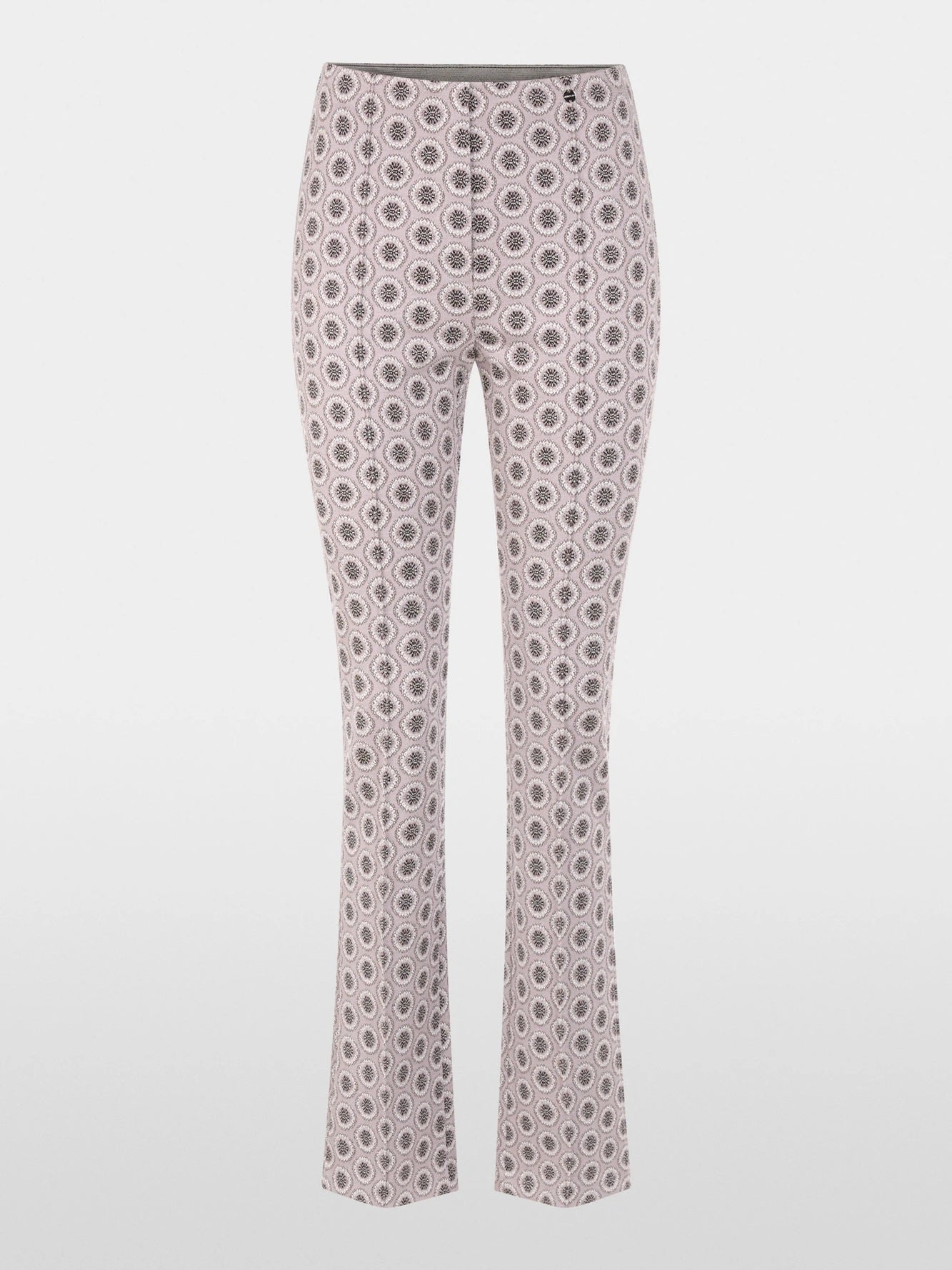 Style Details: Discover effortless style with the Frederica Trousers, where comfort meets contemporary design! Their slip-on construction with a regular-rise elasticated waistband ensures an easy, flattering fit, while the eye-catching graphic print on the elasticated scuba jersey adds a bold, modern touch. The slim, straight legs are defined by a stitched crease, and the feminine cut enhances your silhouette with understated elegance. Crafted from crease-resistant fabric, these trousers are as practical as they are stylish—perfect for a polished, everyday look!