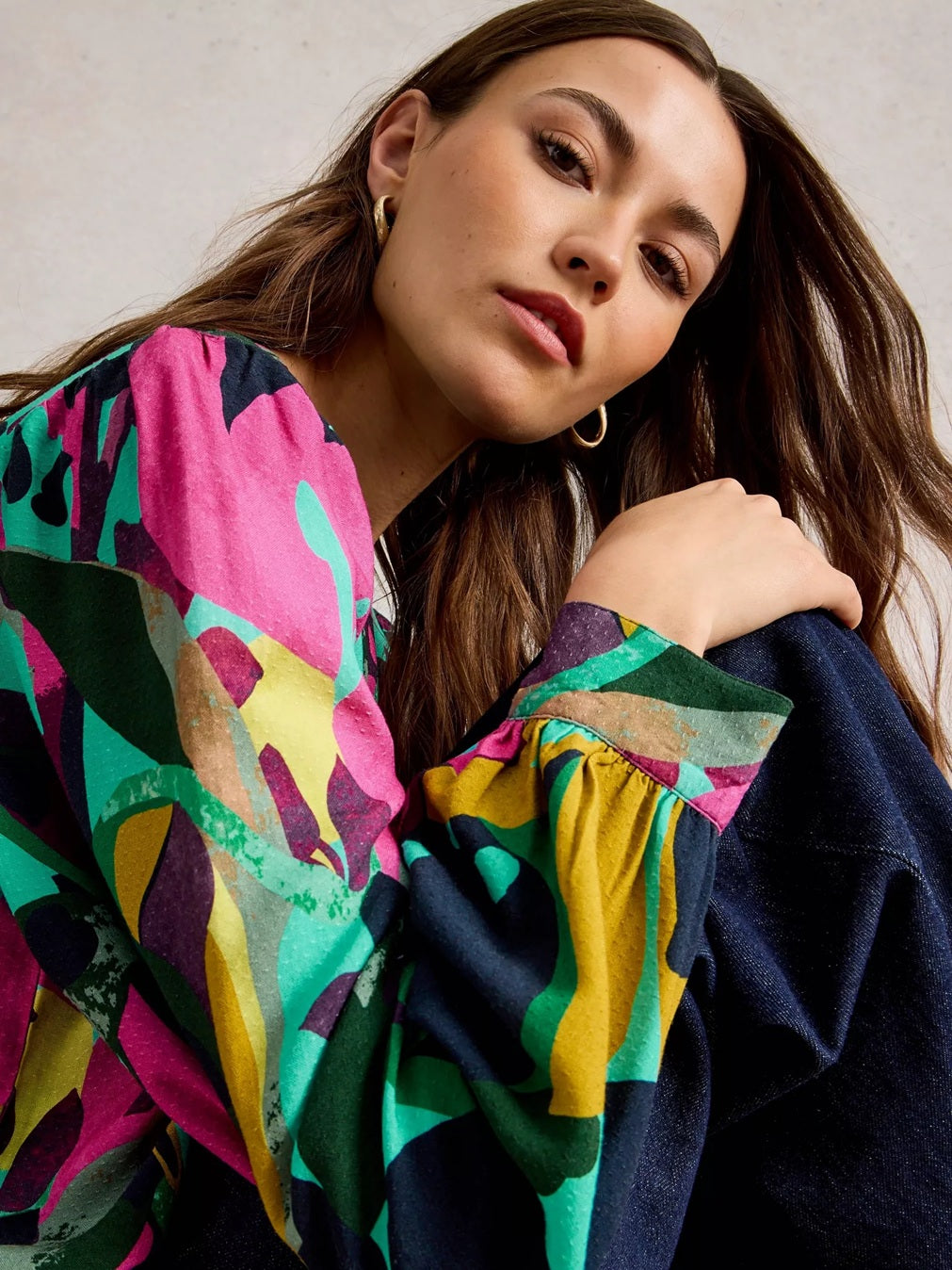 Style Details: Step into effortless charm with the Ulla Top in Pink MLT, a piece designed to bring brightness to any day! Featuring a flattering round neckline, breezy long sleeves with buttoned cuffs, button closure at back, cut in a regular fit, a vibrant, floral-inspired print in uplifting tones, it pairs beautifully with everything from dark-wash denim to tailored trousers, making it as versatile as it is chic. This top is your go-to for adding a pop of colour and confidence to your everyday style!