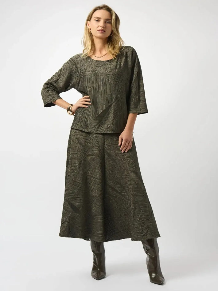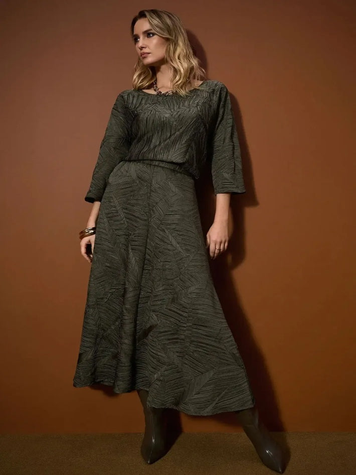 Style Details: Step into effortless style with this versatile avocado top, designed to bring sophistication to any occasion! Featuring a relaxed fit, hip-length silhouette, round neck, 3/4 length straight sleeves, subtle pleated detail, perfect for casual, office, or semi-formal settings. Pair with our marching skirt for a fab coordinated look!