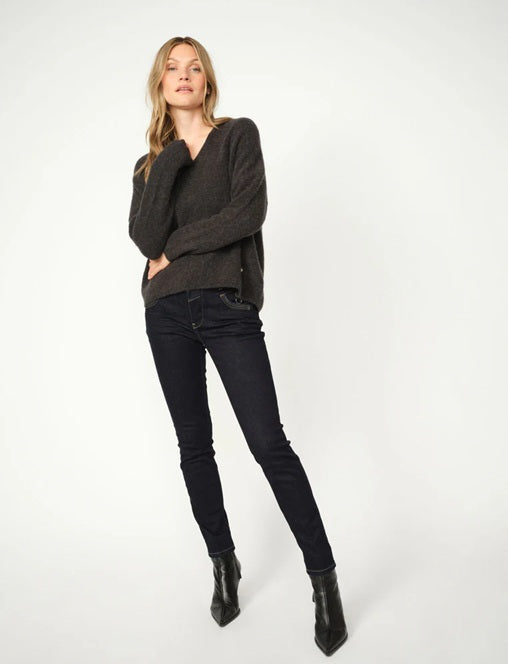 Style Details: The Carla Naomi Hybrid Jeans come in a rich dark wash, offering a timeless and versatile look. Designed in a regular fit with a flattering mid-rise, they feature contrast seams and a sleek zipper detail at the pocket for a modern edge. With a touch of stretch for all-day comfort, they are the perfect blend of style and ease!