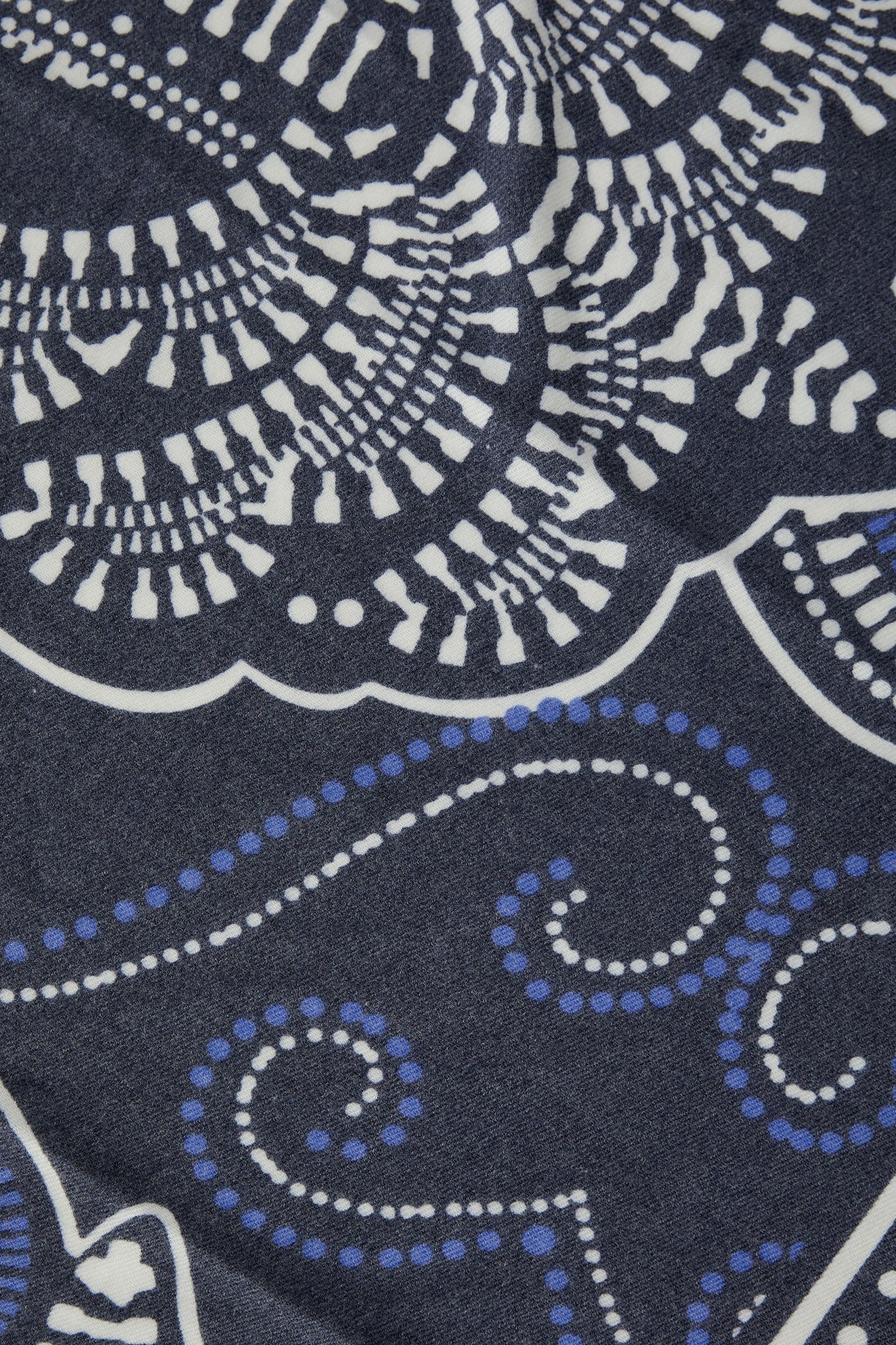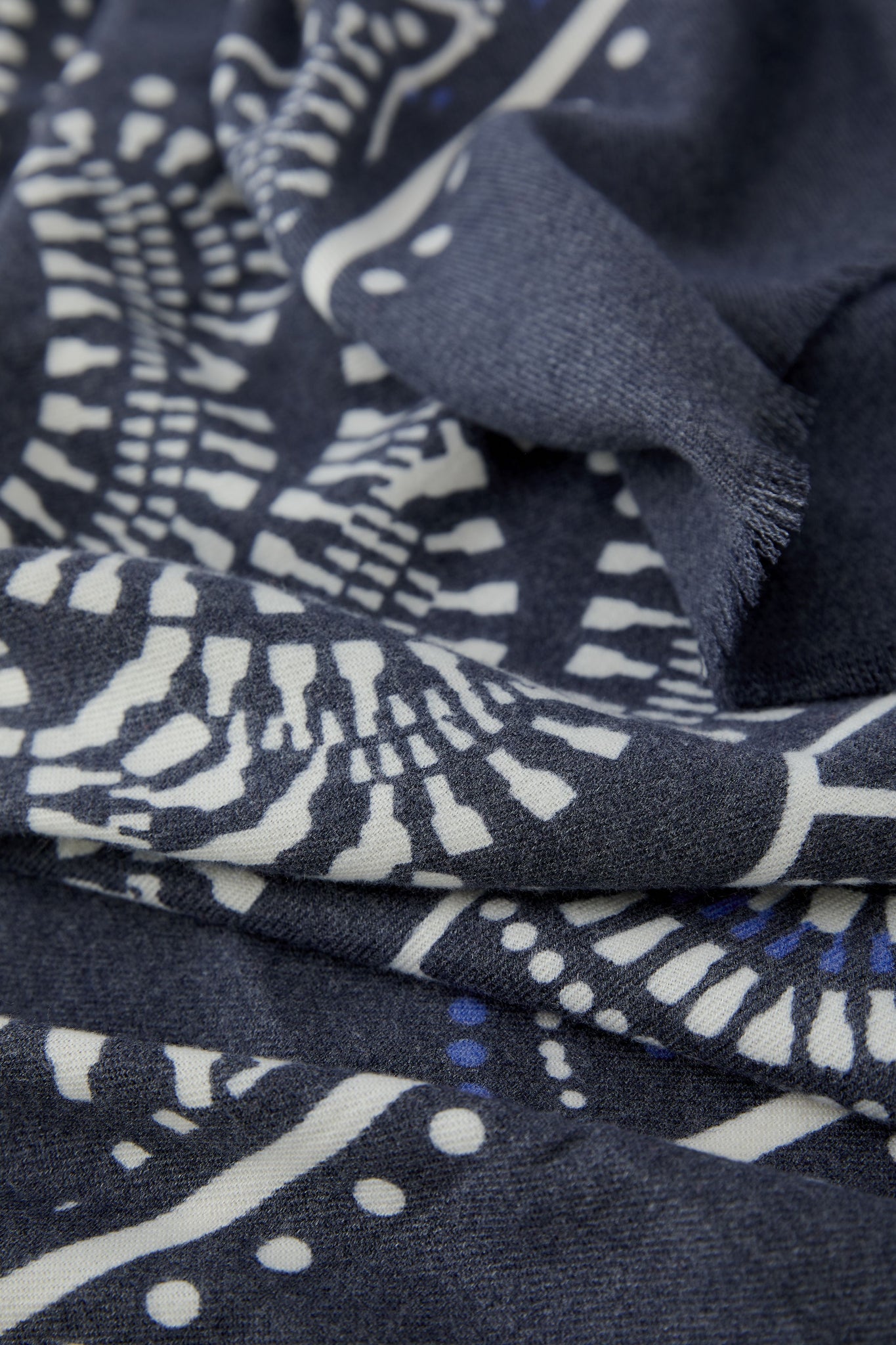 Style Details: Wrap yourself in effortless sophistication with this navy print scarf, a statement accessory that channels Western-inspired charm with a modern edge! Crafted from luxuriously soft fabric, its generous square design offers endless styling possibilities, from draping elegantly over the shoulders to tying boldly as a headscarf. The tricolour palette comes alive through a striking large placed print, while delicate fringed hems add a touch of movement and texture.
