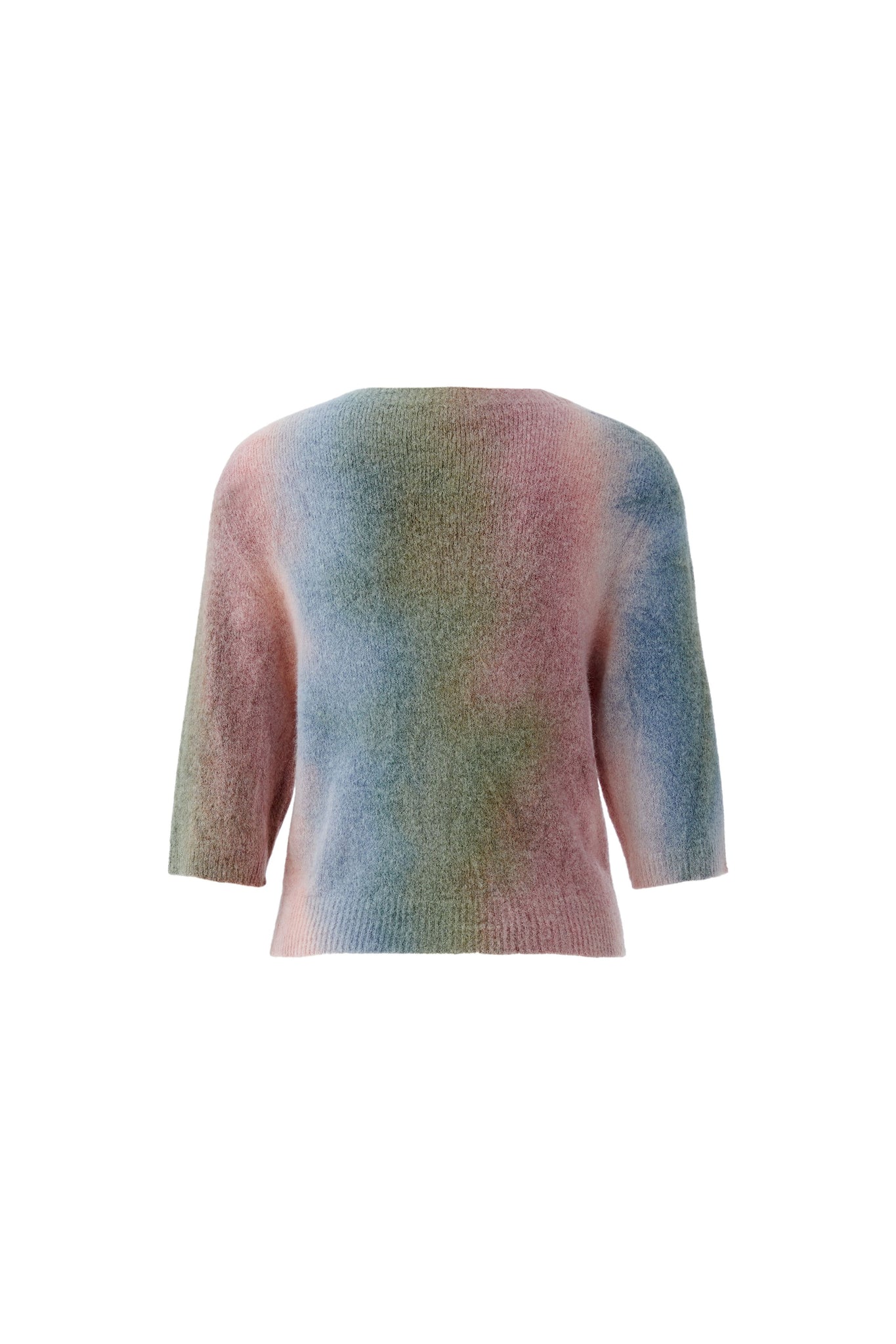 Style Details: Embrace effortless style with this soft, fluffy sweater in a one-of-a-kind batik-inspired dip-dye! Seamlessly knitted from a cosy yarn blend, it features a slim, cropped fit, 3/4 length sleeves, a round neckline with ribbed trim, ribbed cuffs and hem, this Italian-made piece brings texture, colour, and comfort to your wardrobe! Pair with your favourite jeans and trainers for a casual look.
