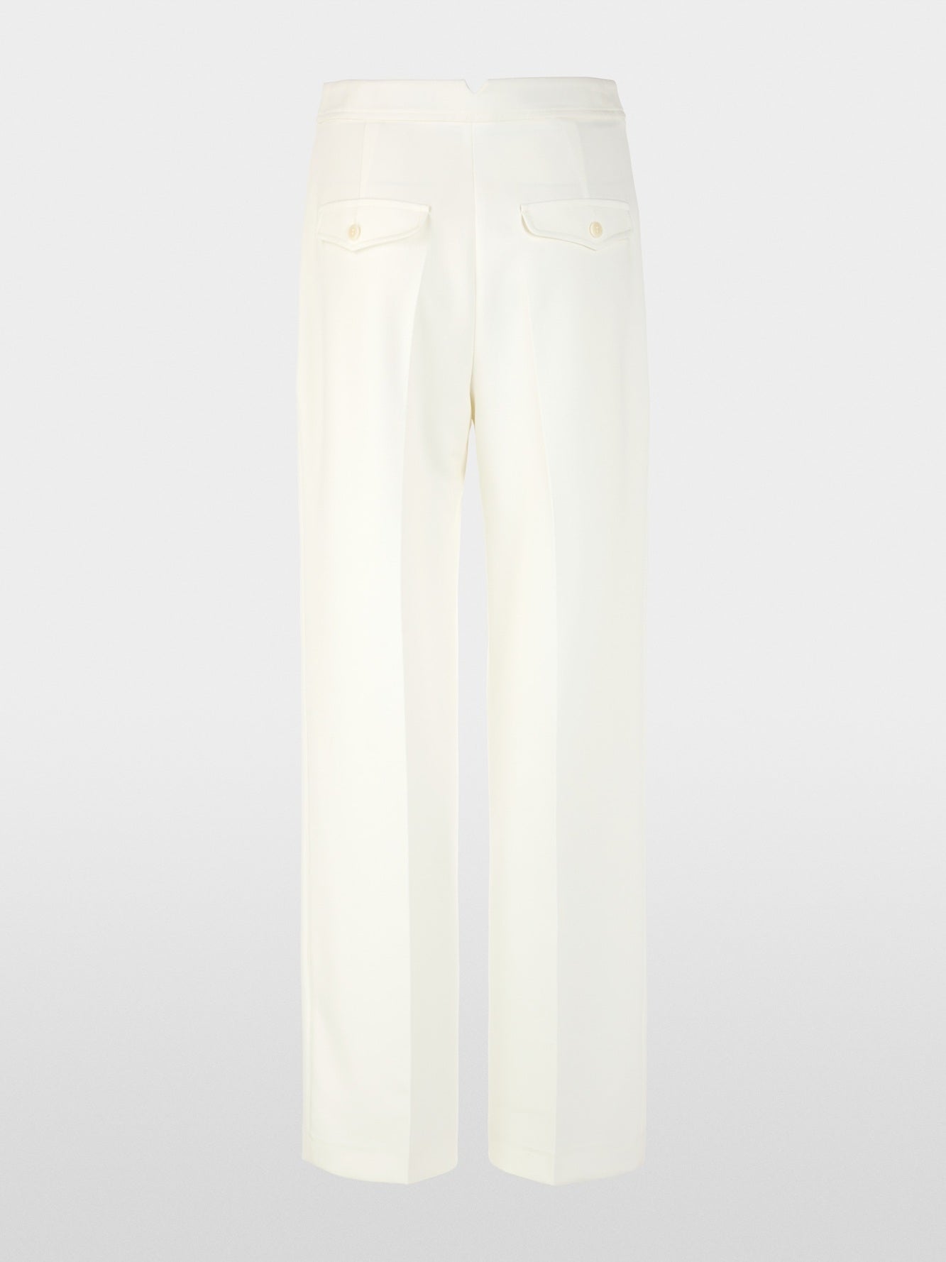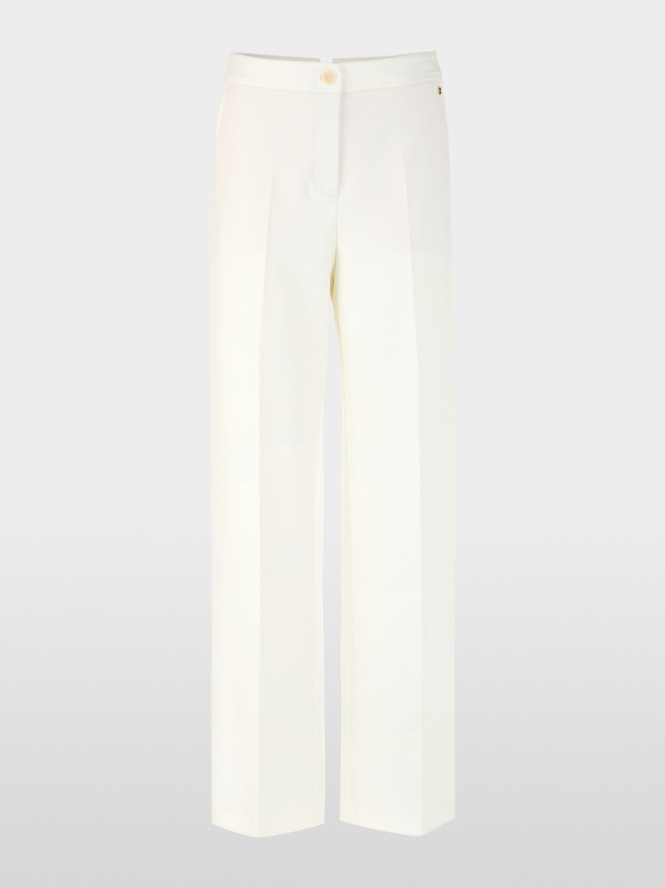 Style Details: Step into modern elegance with these Wukari Off-white trousers, crafted from a comfortable blend of viscose and recycled polyester. Featuring a wide fit, high waistband, sleek creases that create a flattering, stylish silhouette, practical slanted pockets and a classic button-and-zip fastening complete the design, making these trousers a versatile choice for both work and weekend looks.