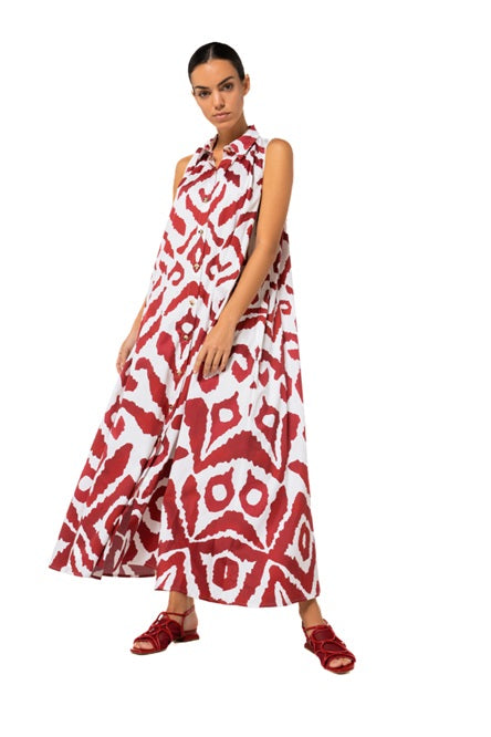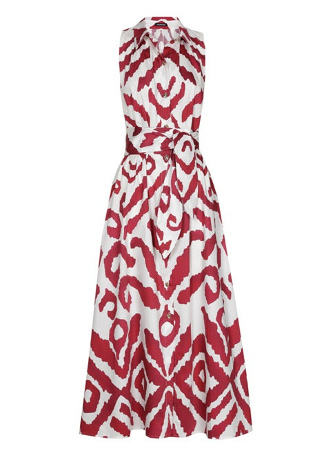 Style Details: A striking graphic print gives this sleeveless midi shirt dress an instant, head‑turning edge, making it the kind of piece that effortlessly elevates your everyday style! Designed with a clean, unlined finish, it features a front centre button fastening, collar, belt, slit pockets at the side seams, the midi length brings graceful movement, and the sleeveless cut keeps the silhouette fresh, modern, and endlessly versatile!