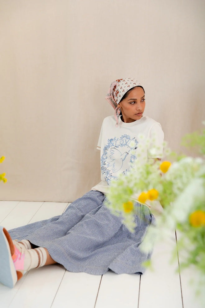 Style Details: The Boyfriend Ecru Tee features a relaxed fit, crafted from organic cotton, crew neck, a unique hand-painted placement print at front, short sleeves, designed for