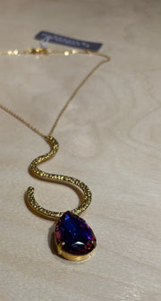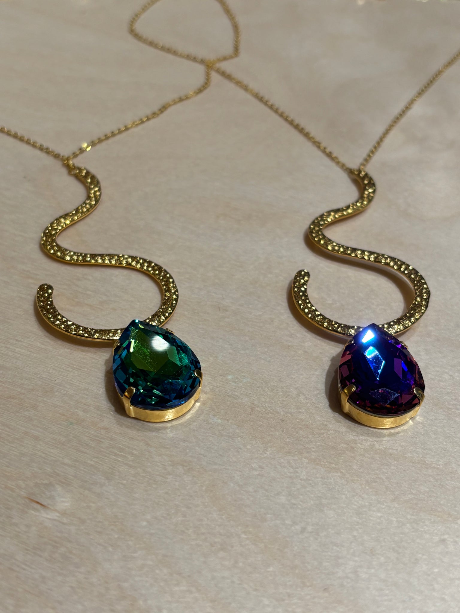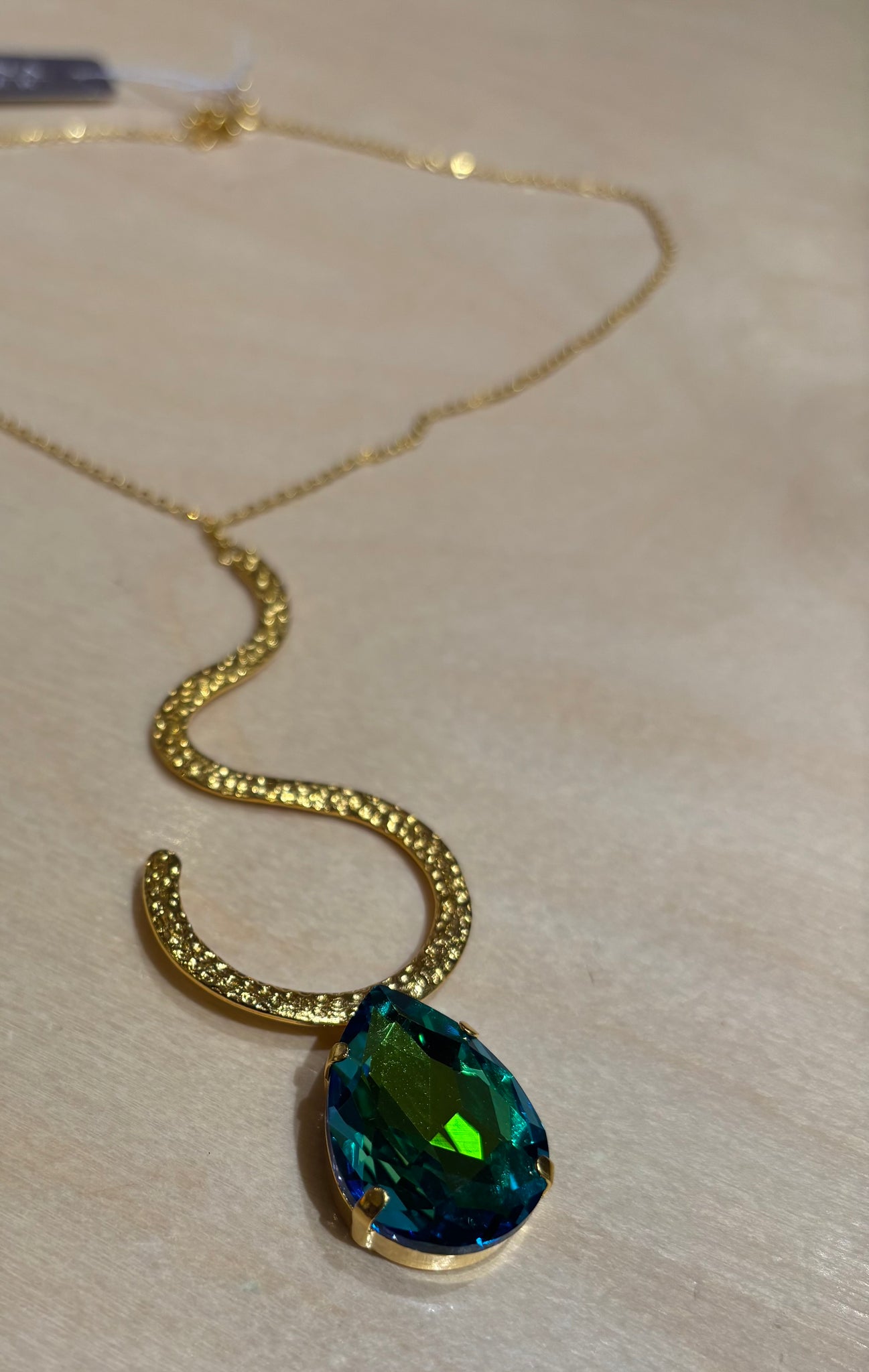 Style Details: This elegant gold necklace features a stunning Swarovski pendant, adding a touch of sparkle and sophistication to any outfit. Available in two beautiful colours, it offers versatility to match your personal style, whether you're dressing up for a special occasion or adding a subtle touch of glamour to everyday wear. The delicate gold chain ensures a refined, timeless look that complements any neckline!