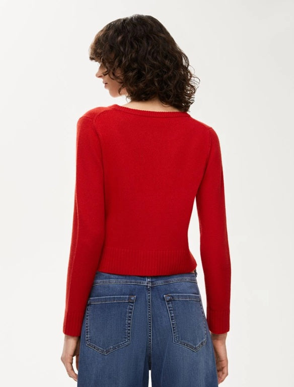 Style Details: Elevate your wardrobe with the Tandem Knit Cardigan in striking red, a versatile piece that exudes effortless sophistication! Crafted from a luxurious cashmere and wool blend, it wraps you in unmatched warmth and softness—ideal for layering under a blazer or wearing confidently on its own. Designed with a straight silhouette, a classic round neckline, and long sleeves, a refined button fastening for timeless appeal, its regular fit ensures comfort without compromising style, making it a wardrobe essential that seamlessly transitions from cosy mornings to polished evenings.