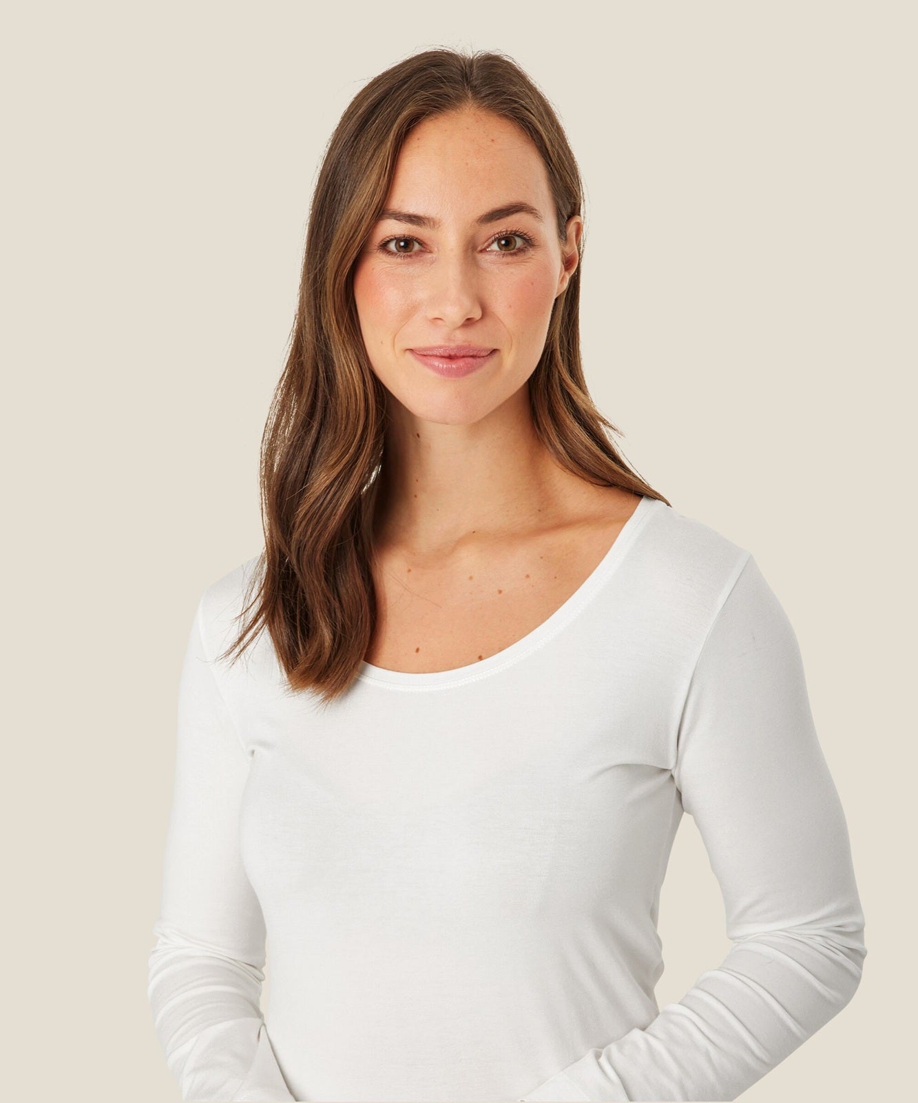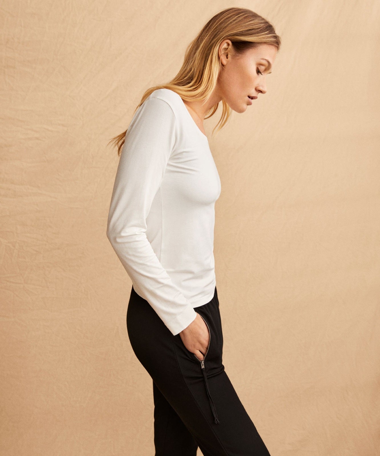 Style Details: Discover the beauty of effortless style with the Creama jersey top in pristine white — a soft basic that seamlessly complements every piece in your wardrobe! Crafted from a comfortable jersey fabric, this long-sleeved top offers a slightly fitted silhouette that gently shapes without feeling restrictive, crew neck. Whether paired with classic jeans, bold patterned trousers, or a flowing maxi skirt, the Creama top is your go-to foundation for chic, versatile looks that feel as good as they look.