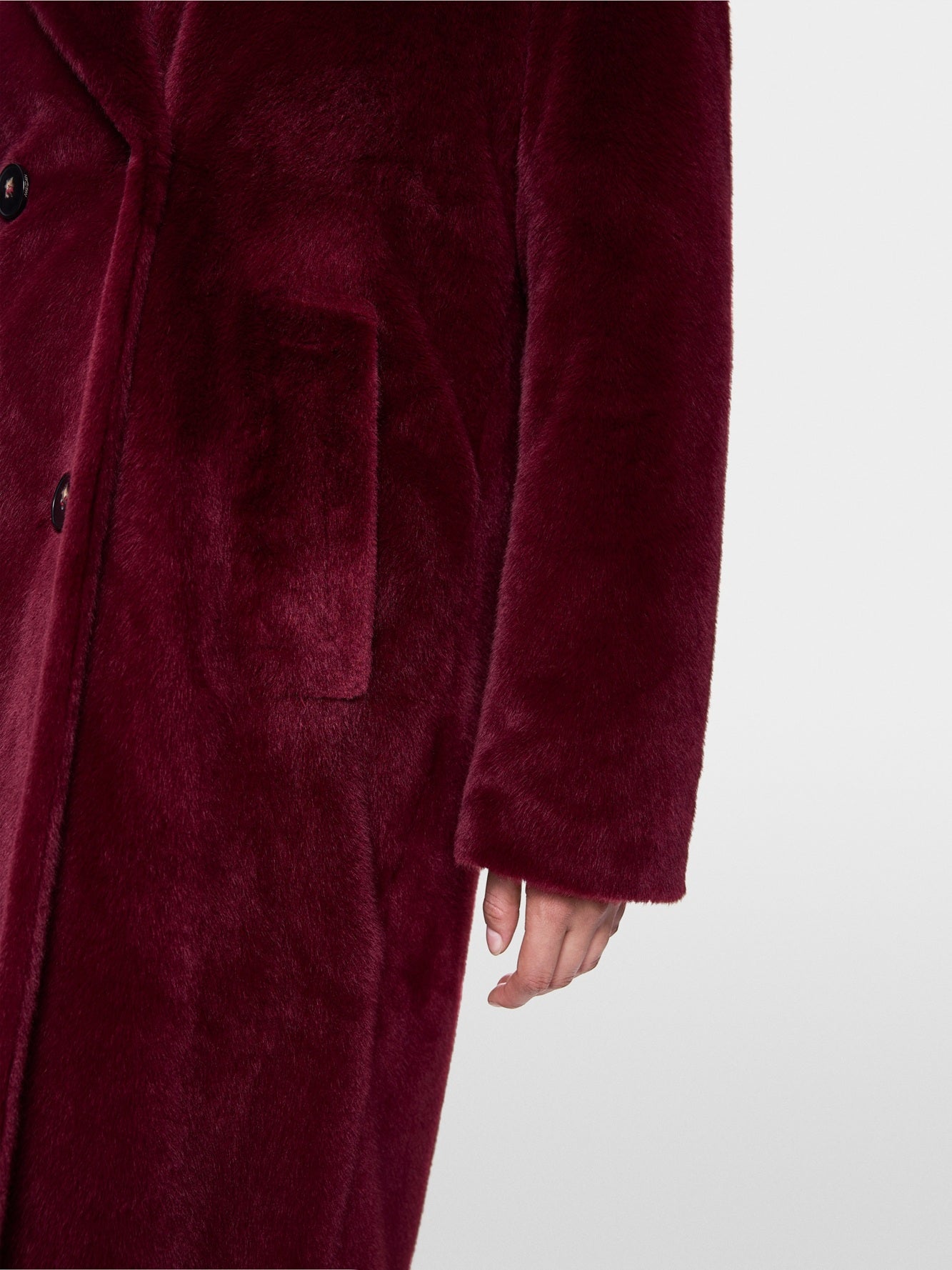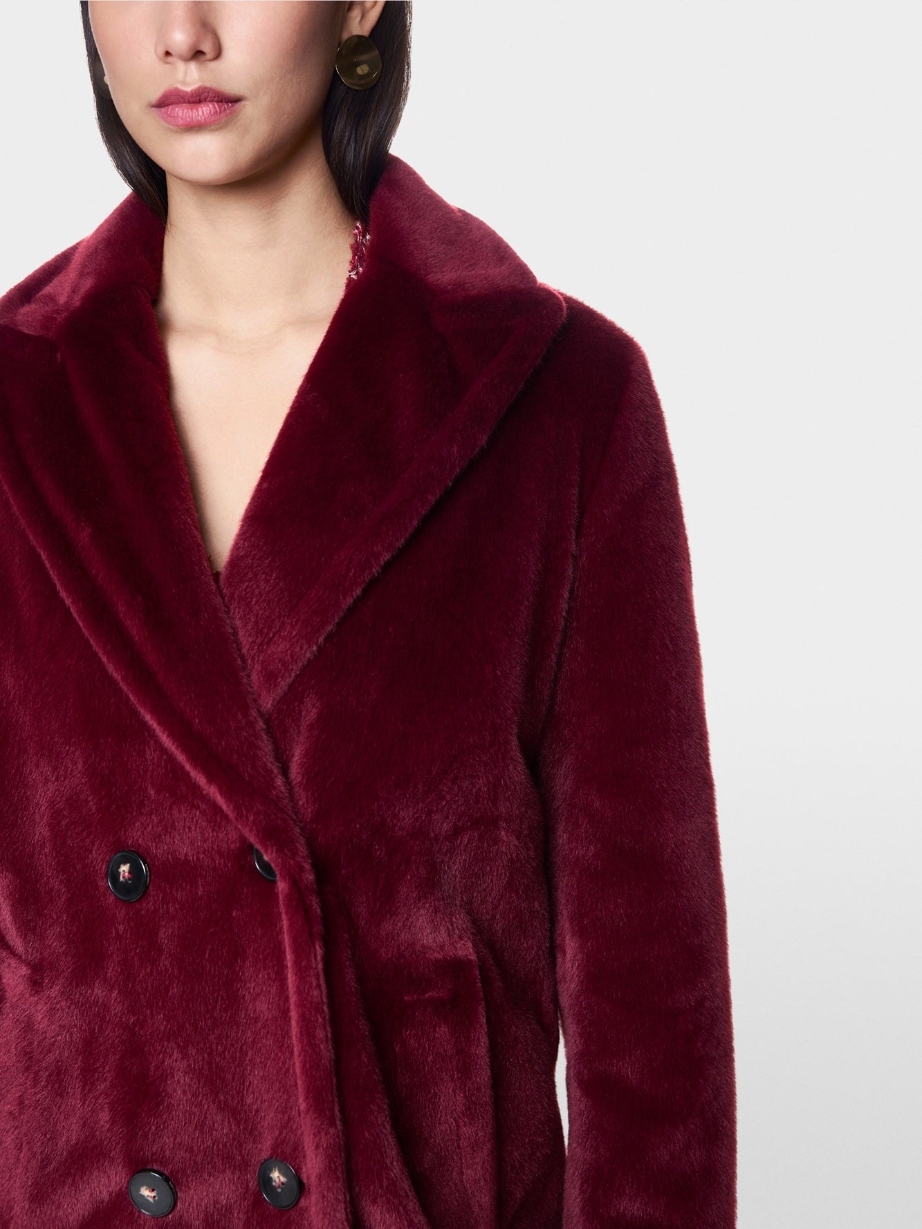Style Details: Wrap yourself in effortless sophistication with this fluffy faux fur wine coat! Crafted from luxuriously soft polyester, it embraces you with a cosy feel while maintaining a chic, wide-cut silhouette. Featuring a collar, four elegant buttons, discreet side pockets, its plush texture and versatile cut make it an essential piece for cooler days—whether you’re layering over casual ensembles or adding polish to evening looks, this coat ensures both warmth and elegance in every step!