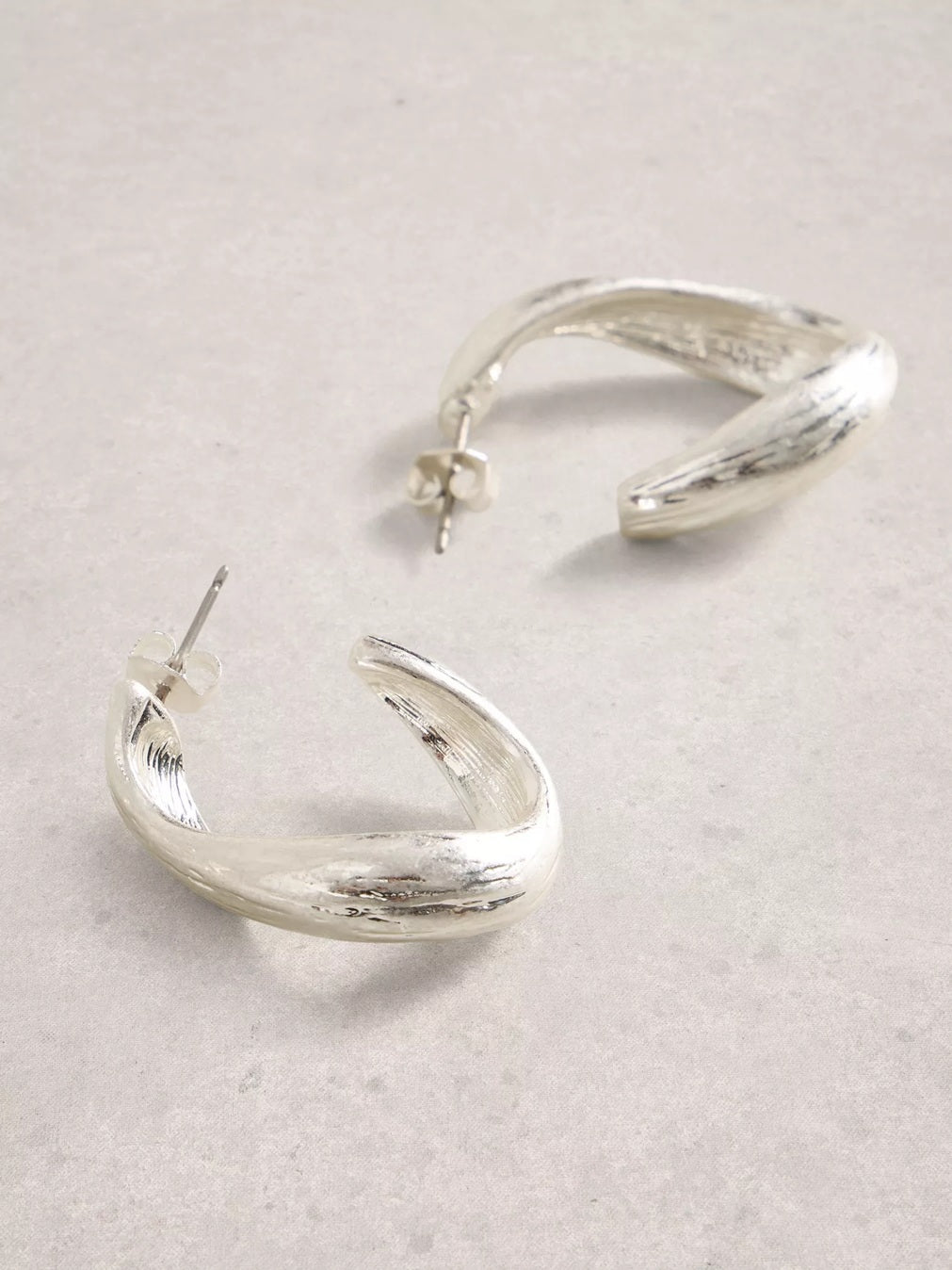 White Stuff Abstract Hoop Earrings Silver Tone Metallic
