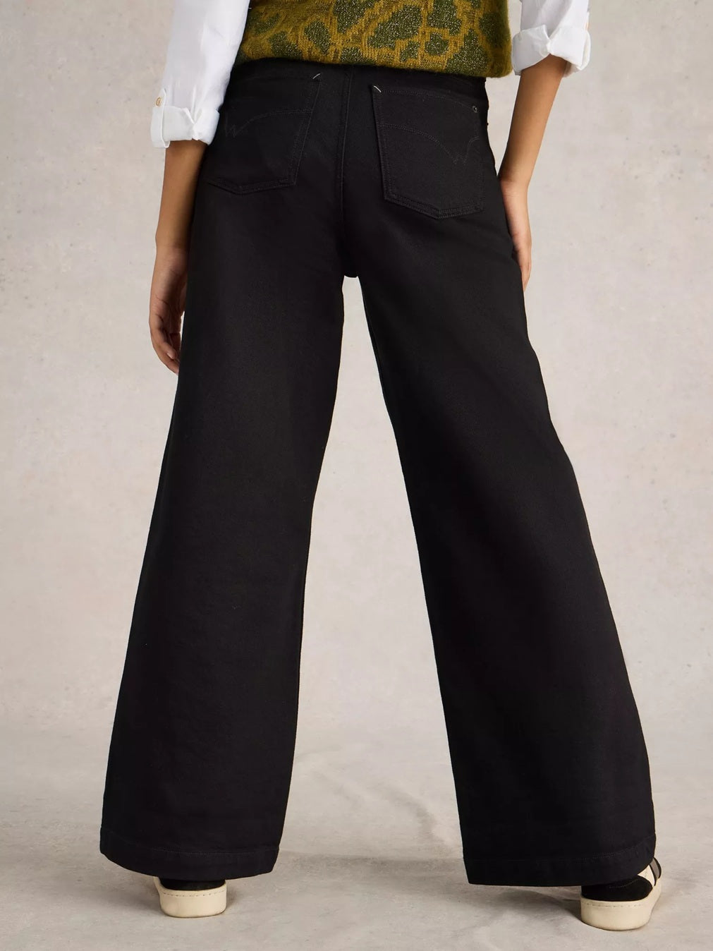 Style Details: The Ayla Wide Leg Jean in black denim redefines effortless cool with its sleek, full-length silhouette and timeless five-pocket design. Crafted for both comfort and style, these jeans feature a flattering wide leg that flows gracefully from the waist down, complemented by classic button and zip closure and practical belt loops. Versatile and modern, the Ayla jean is a wardrobe essential that pairs perfectly with everything from tailored blouses to casual tees, delivering an effortlessly chic look every time. Also available in Mid Denim.