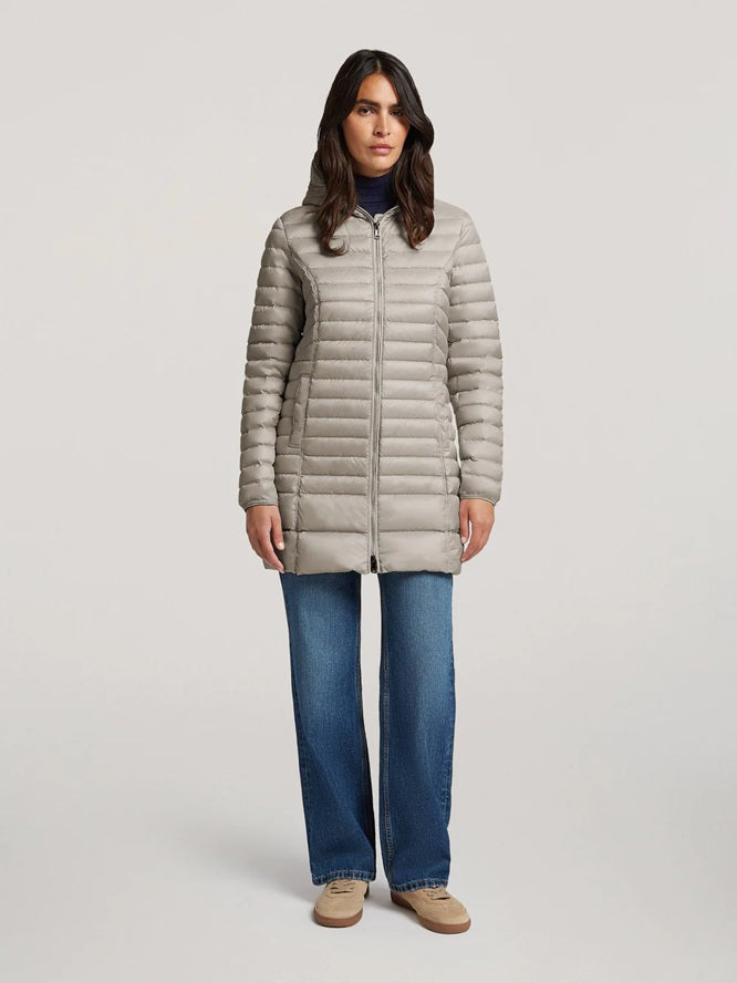 Style Details: Stay effortlessly stylish on the move with the Tokyo Silver Jacket, a trans-seasonal lightweight jacket designed for versatility and travel-ready convenience! Crafted from sleek nylon, it features a full-length 2-way front zipper that extends to the top of the fixed hood, offering both protection and a modern silhouette, elasticated sleeve cuffs and snap-closure pockets combine functionality with refined detail, while its packable design allows the jacket to fold neatly into a small bag for easy portability. Perfect for transitional weather, the Tokyo Jacket delivers essential warmth, contemporary style, and practical sophistication in one chic, compact piece. Also available in Dark Thyme.
