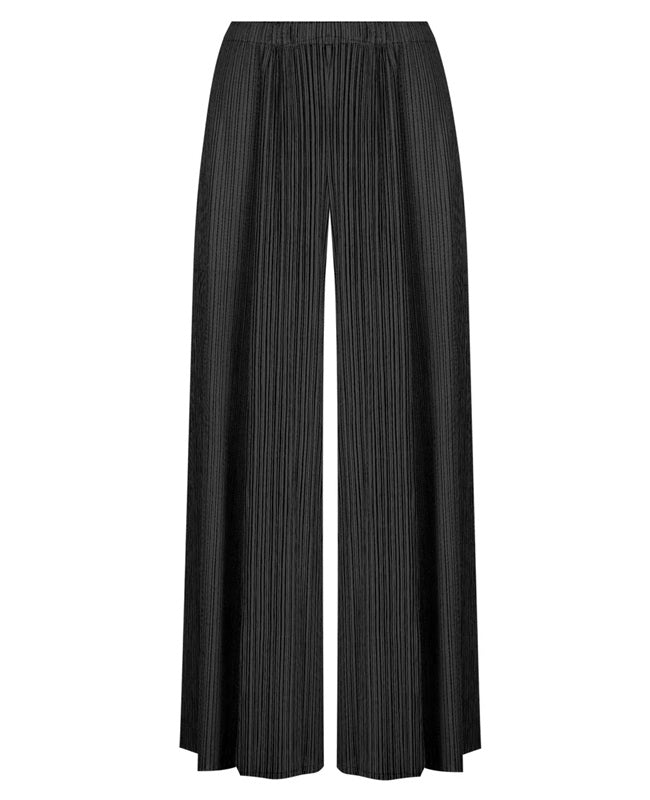 Style Details: Fluid, flattering, and endlessly wearable—these pleated black trousers bring effortless movement to your everyday wardrobe! Made with Alquema’s signature pleating and crafted from lightweight, wrinkle-resistant Japanese yarn, this wide-leg silhouette drapes beautifully with every step. The mid-hip fit, elastic waistband, and subtle front pleats blend comfort with clean, modern design—making it a go-to for travel, workdays, or relaxed weekends in style!
