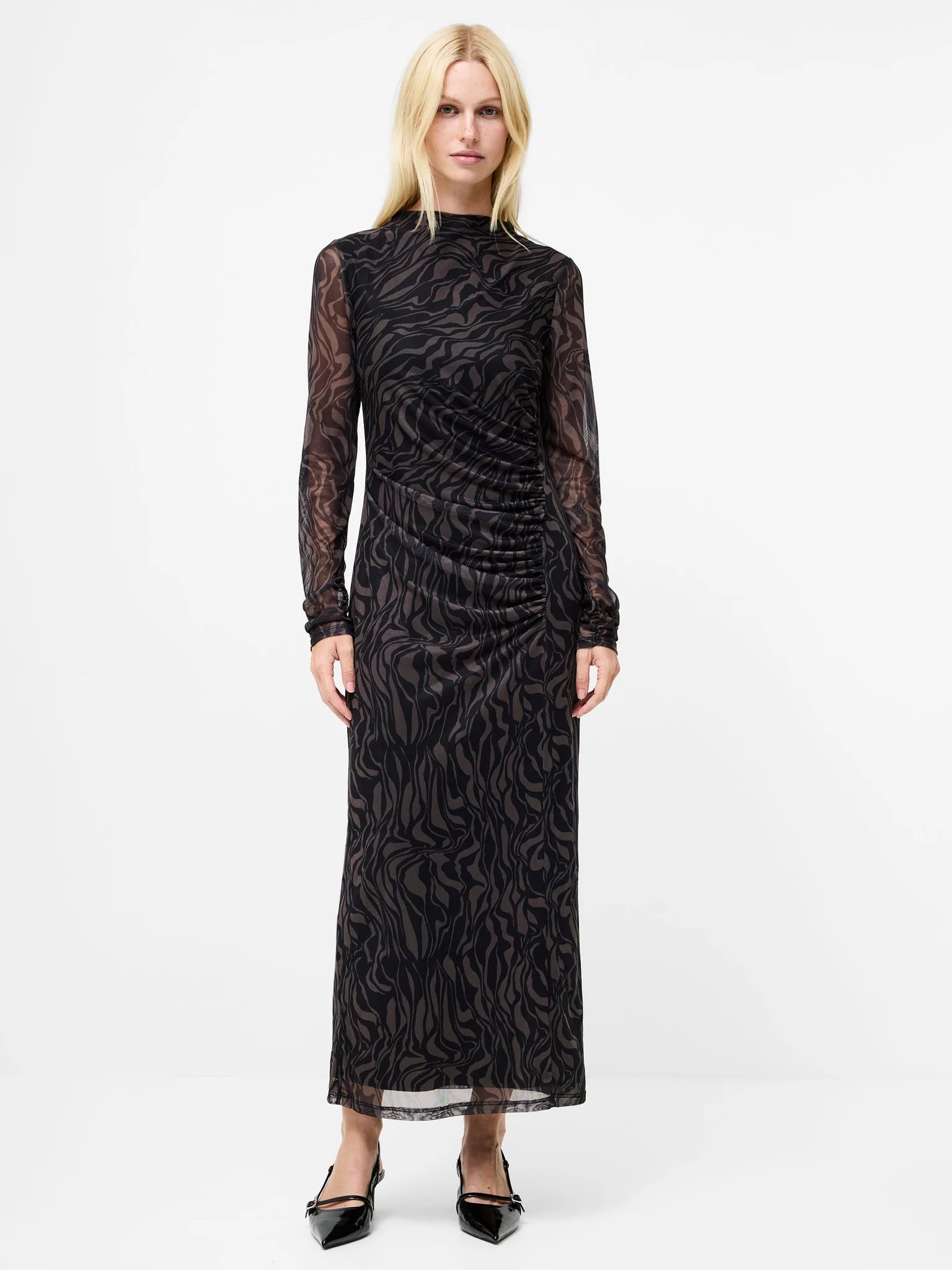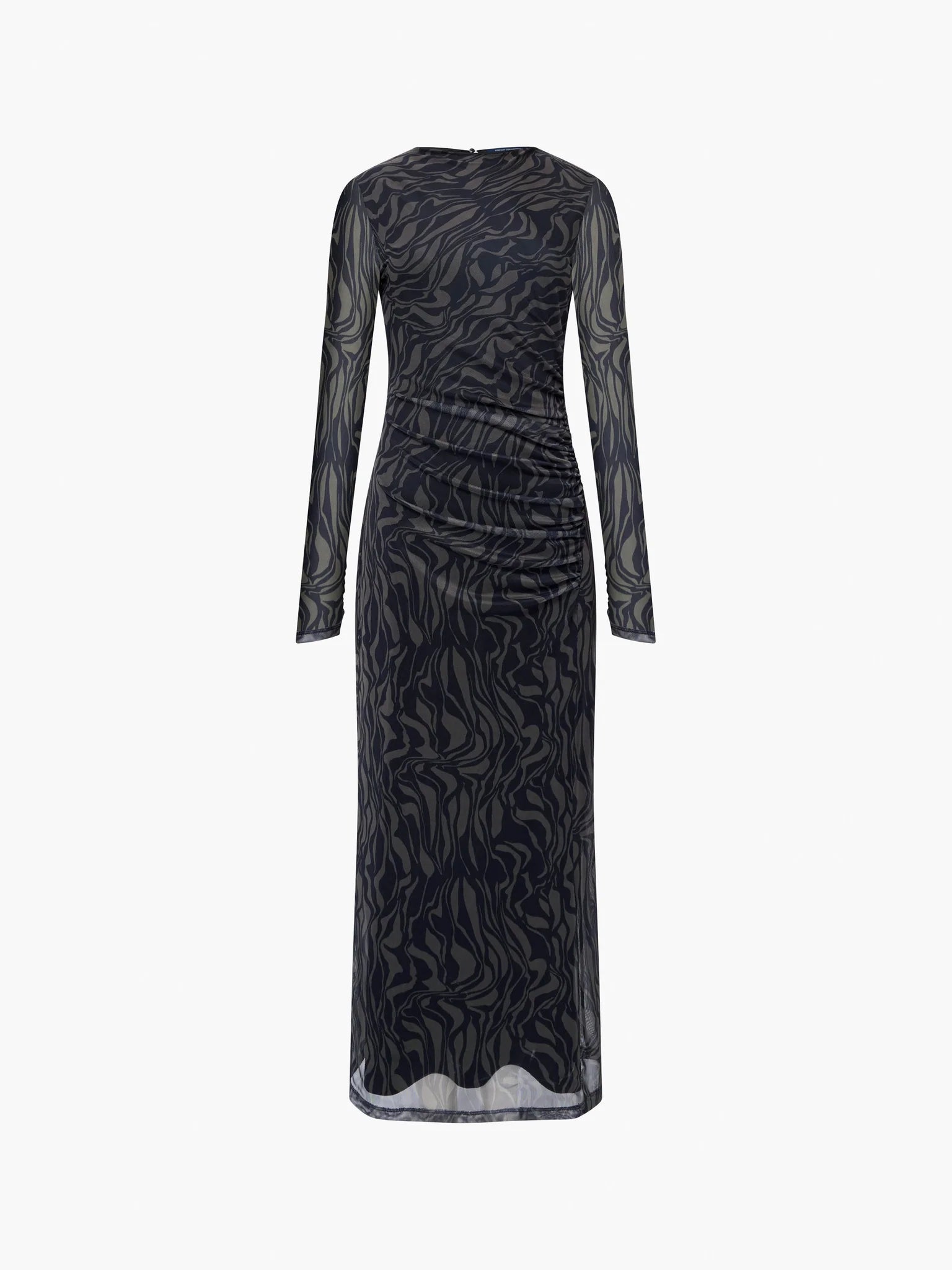 French Connection Zaria Mesh Dress Khaki/Black Print