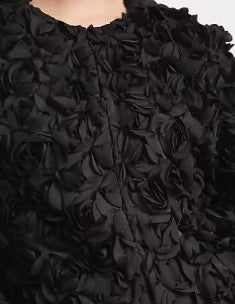 Style Details: Step into sophistication with the Verity Short Black Jacket, a modern masterpiece that redefines feminine chic! Adorned with an exquisite 3D floral design, hook-and-eye closure, this jacket blends texture and elegance for a look that’s both timeless and contemporary, featuring a round neckline, long sleeves, regular fit create a sleek silhouette, while the cropped length adds a flattering, fashion-forward edge — perfect for layering over dresses or high-waisted pieces. Effortlessly polished and endlessly versatile, the Verity Jacket is your go-to piece for refined style with a touch of artistic flair!