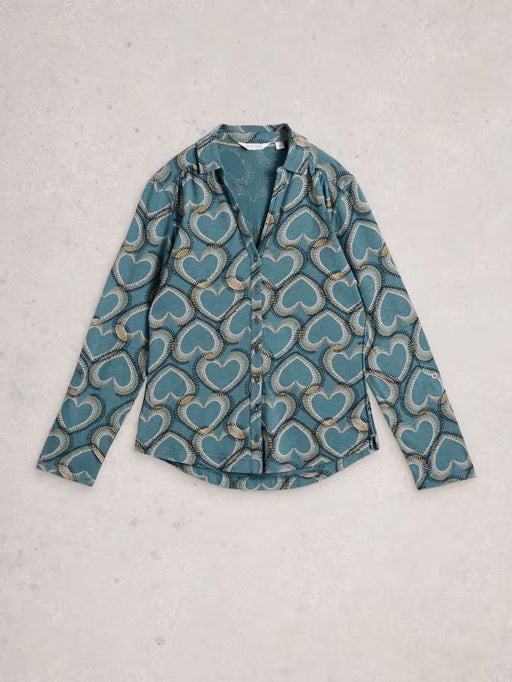 Style Details: Meet the shirt that redefines easy elegance — the Annie Jersey Shirt in Blue Print! Soft, stretchy, and effortlessly stylish, it’s crafted from smooth jersey fabric that moves with you and feels as comfortable as your favourite tee. Featuring a classic collar, ¾ length sleeves with roll tabs, button front and a regular fit, it’s the perfect blend of polish and ease for every day!