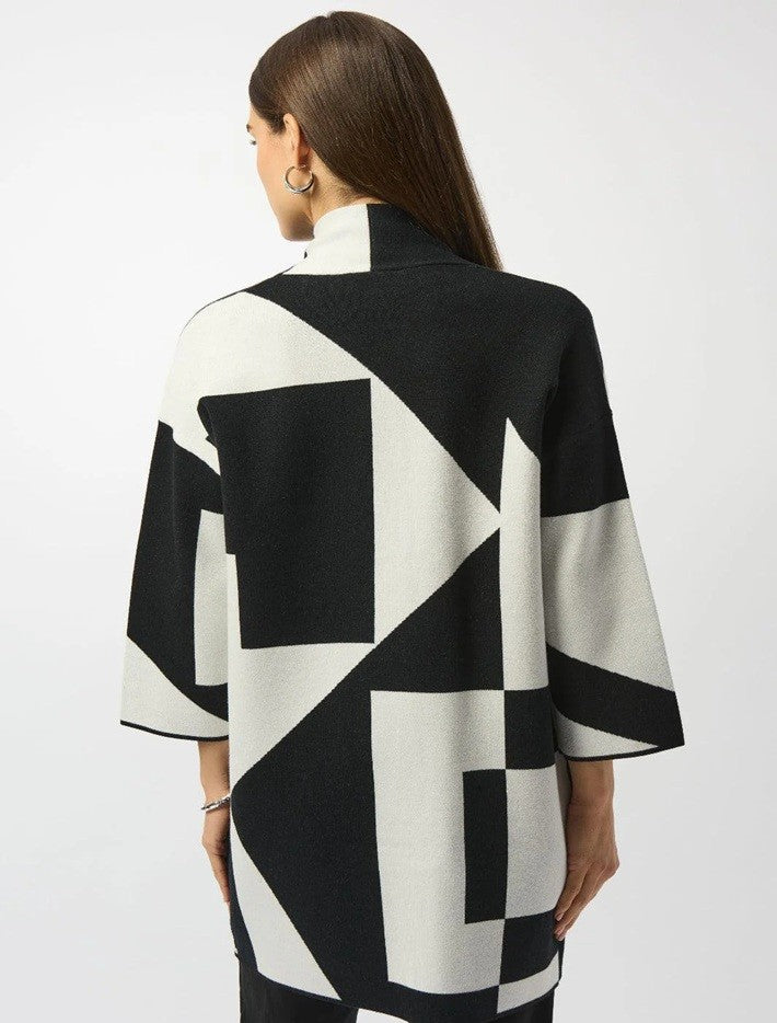 Joseph Ribkoff Knit Cover Up Abstract Print Black/Vanilla