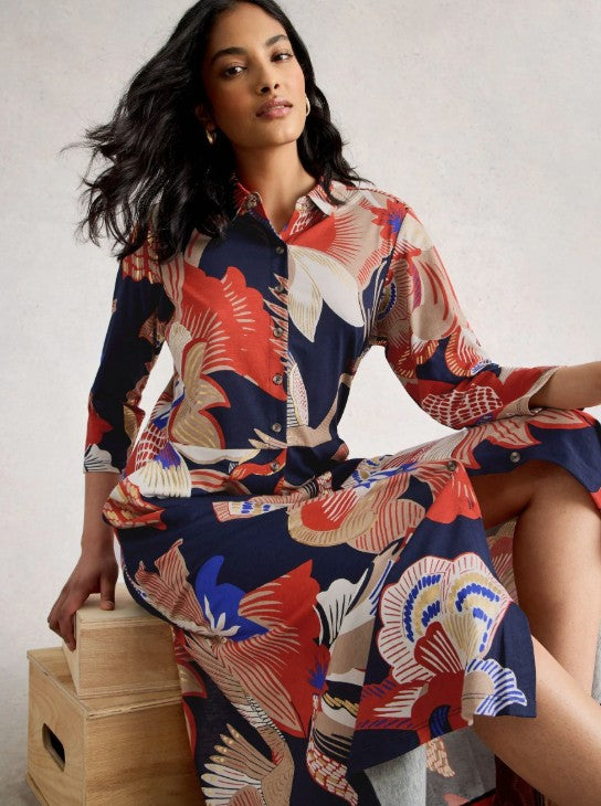 White Stuff Rua Jersey Shirt Dress Red MLT