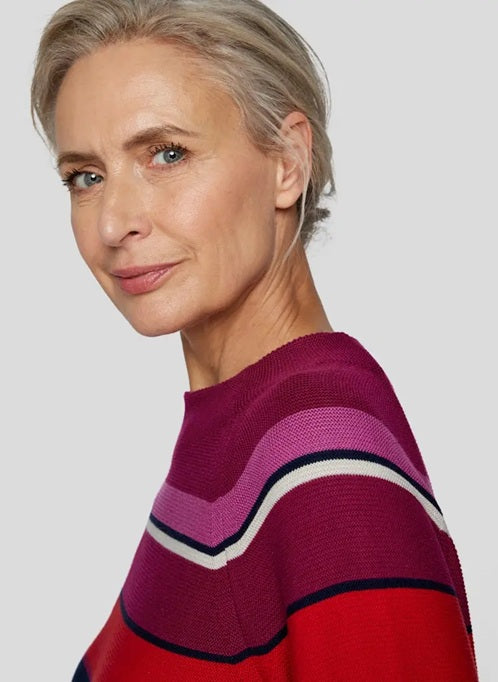 Style Details: Vibrant multicolour striped knit jumper, designed to brighten up chilly days with style and comfort! Featuring a cosy high neck, long sleeves, its playful striped pattern adds a lively touch to any outfit, while its versatile design makes it easy to pair with jeans, skirts, or tailored trousers for effortless, everyday style.