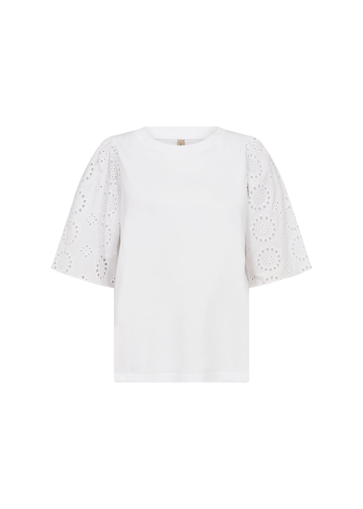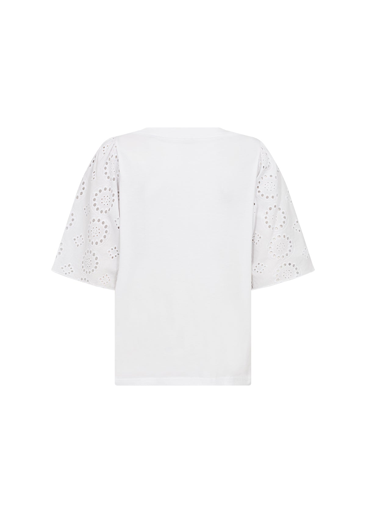 Style Details: Loraine 3 White Blouse is a timeless piece designed to bring soft femininity to your everyday wardrobe! Crafted from 100% organic cotton, it features a flattering round neckline, relaxed loose fit, elegant sleeves adorned with delicate embroidered details. Light, breathable, and effortlessly charming, it pairs beautifully with a long denim skirt, a knitted waistcoat, and ballerinas for a modern layered look full of texture and grace!