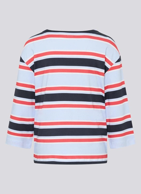 Style Details: This Rabe striped tee is a timeless everyday essential with a soft, relaxed feel, designed with a classic round neckline, flattering 3/4 length sleeves, delicate pastel stripes that add a fresh, easy-going touch. Perfect for casual styling, it pairs effortlessly with jeans, trousers, or layered looks.