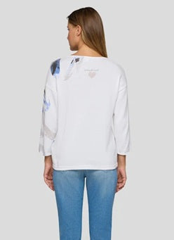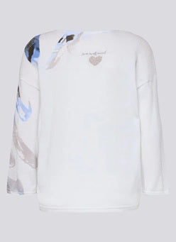 Style Details: This knit jumper by Rabe blends modern style with effortless comfort! Featuring a striking abstract print at front, plain white at back, round neckline, and 3/4 length sleeves that offer a relaxed, versatile fit. Perfect for layering or wearing on its own for an easy, casual outfit.