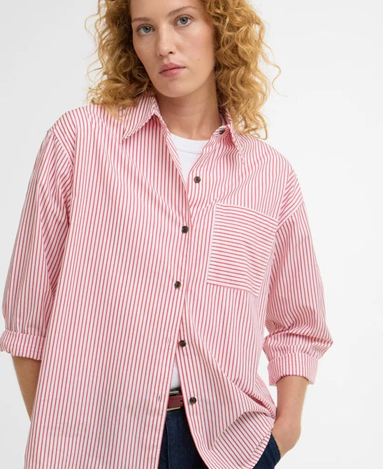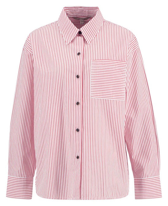 Style Details: Effortlessly bridging classic style and relaxed comfort, the Polly Striped Relaxed Shirt is a wardrobe essential for polished everyday dressing! Made from soft cotton with timeless stripes, it features a pointed collar, dropped shoulders, heritage-inspired mock horn buttons, a practical chest pocket, and a slim ID bar at the back neck. This shirt delivers an easygoing yet refined look, perfect for layering or wearing on its own for understated style!