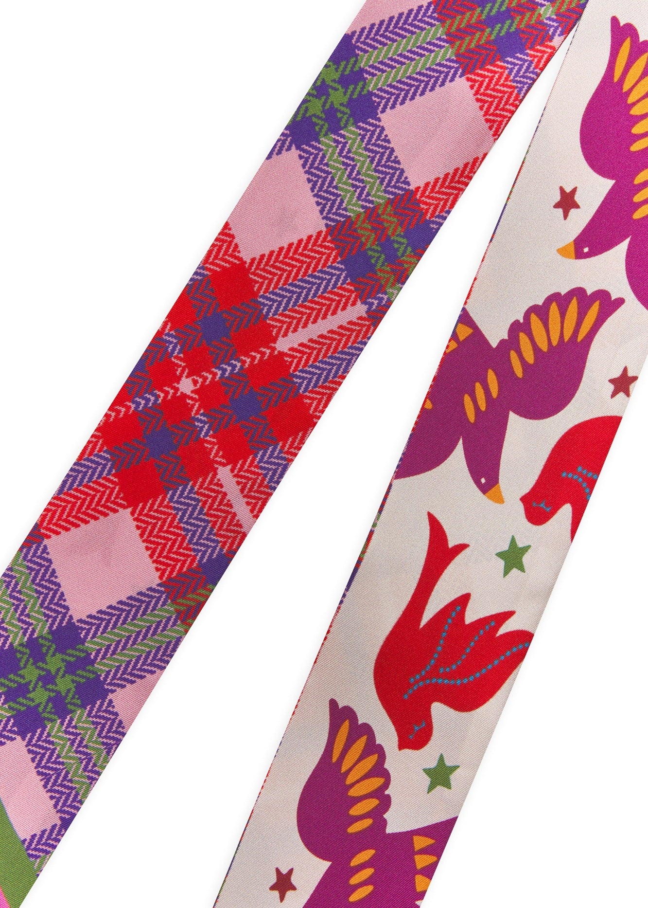 Style Details: Bring a touch of festive elegance to your everyday style with this X-Mas Edition Silk Twilly Scarf, a pure silk accessory that instantly elevates any look! Its slim, refined shape invites endless styling—tie it in your hair, wrap it around your wrist, wear it as a subtle necklace, or adorn your favourite bag. Featuring seasonal hues and charming holiday motifs, it adds a warm, sophisticated accent to every outfit. A small yet standout detail for the celebratory season! Available in other colours.
