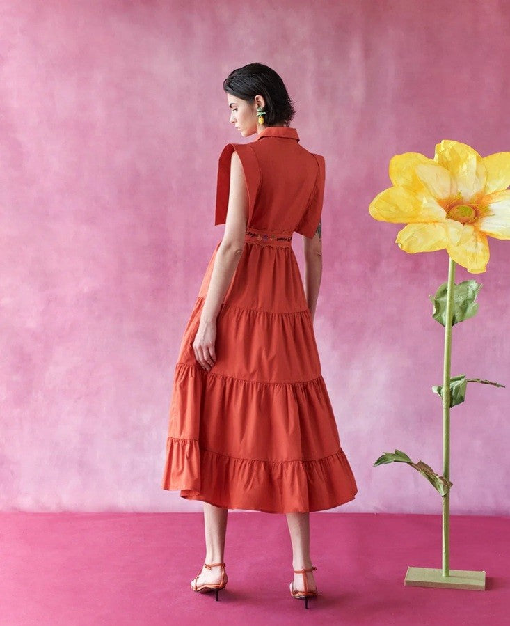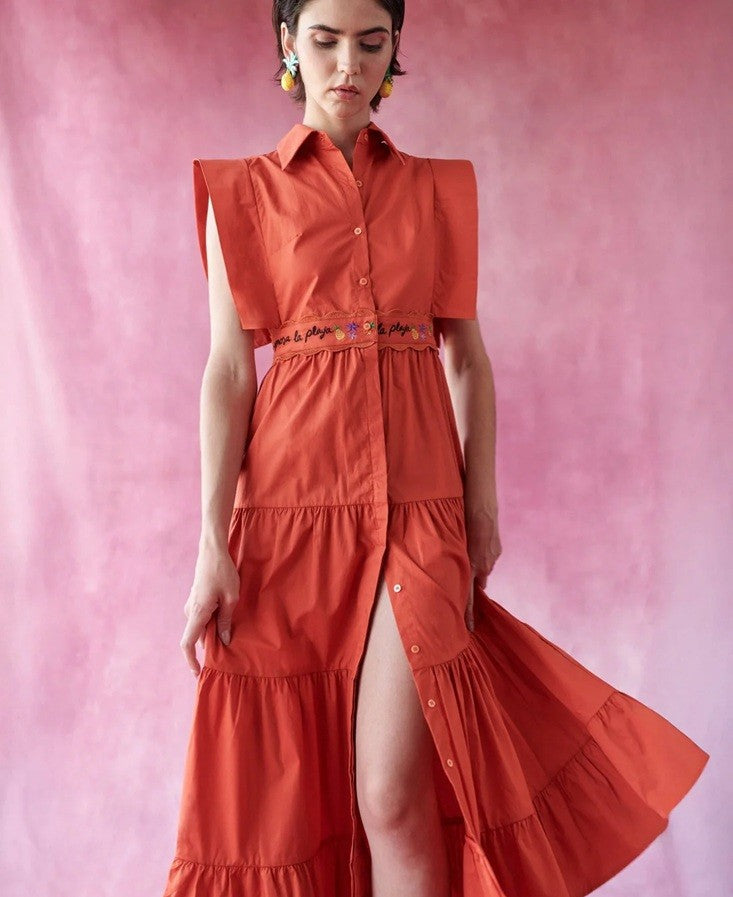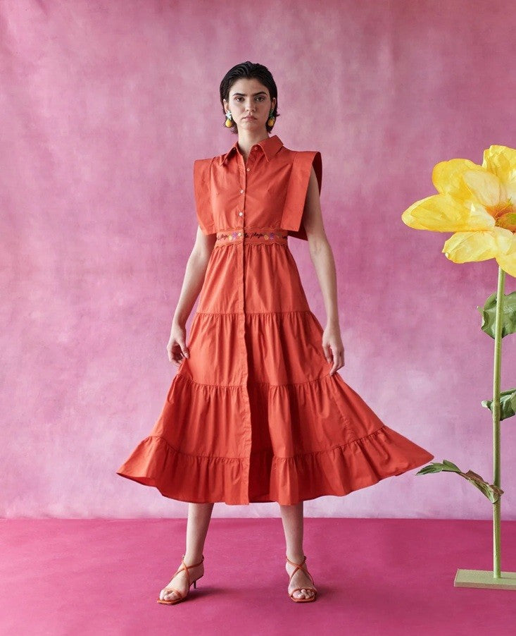 Style Details: Make a confident statement in the Lucero Orange Dress, a vibrant take on timeless tailoring designed to bring energy and elegance to everyday dressing! Crafted in breathable cotton, features a shirt collar, front button closure, defined waist create a polished shape, full-length skirt, side pockets, and structured sleeves, it strikes the perfect balance between ease and sophistication—ideal for warm office days, summer meetings, or elevated everyday moments. Also available in Yellow & a Multi Print.