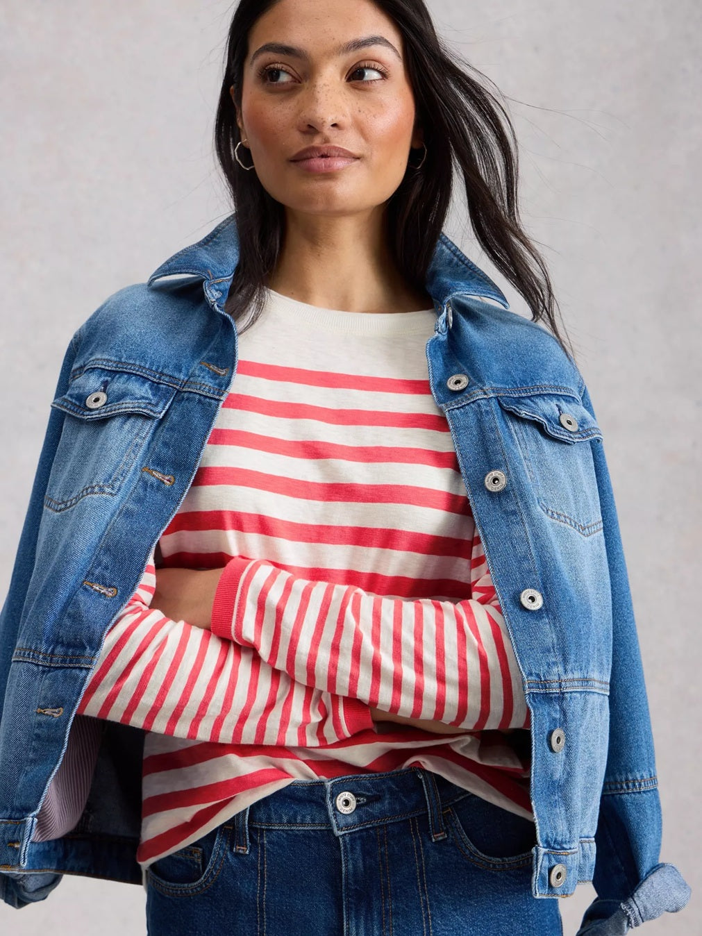 White Stuff Clara LS Stripe Tee Pink MLT