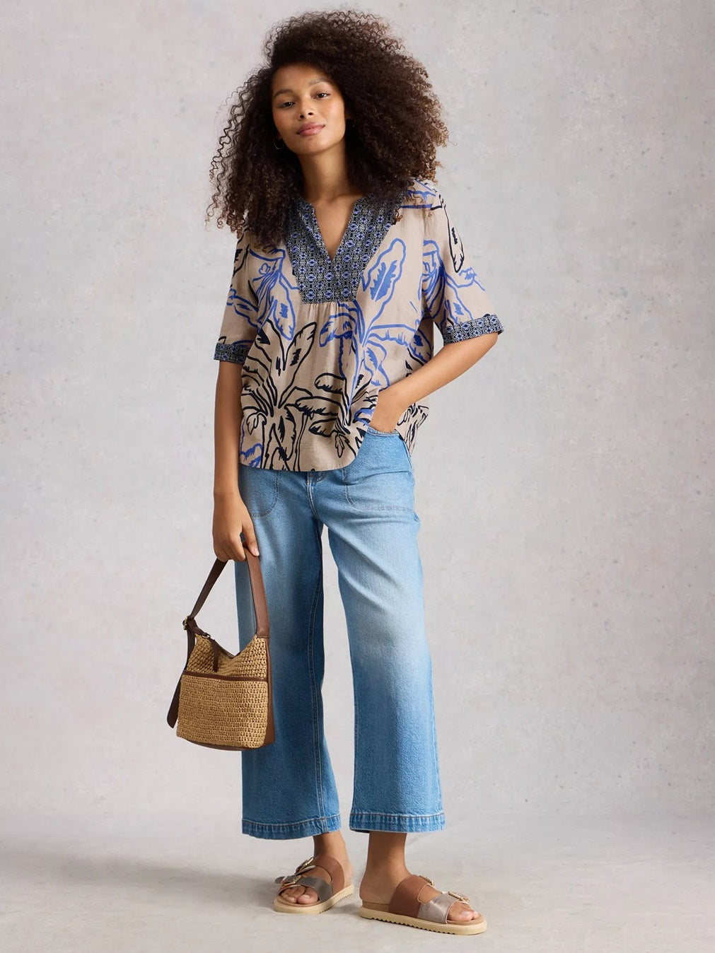 White Stuff Ash Linen Blend Top Nat MLT