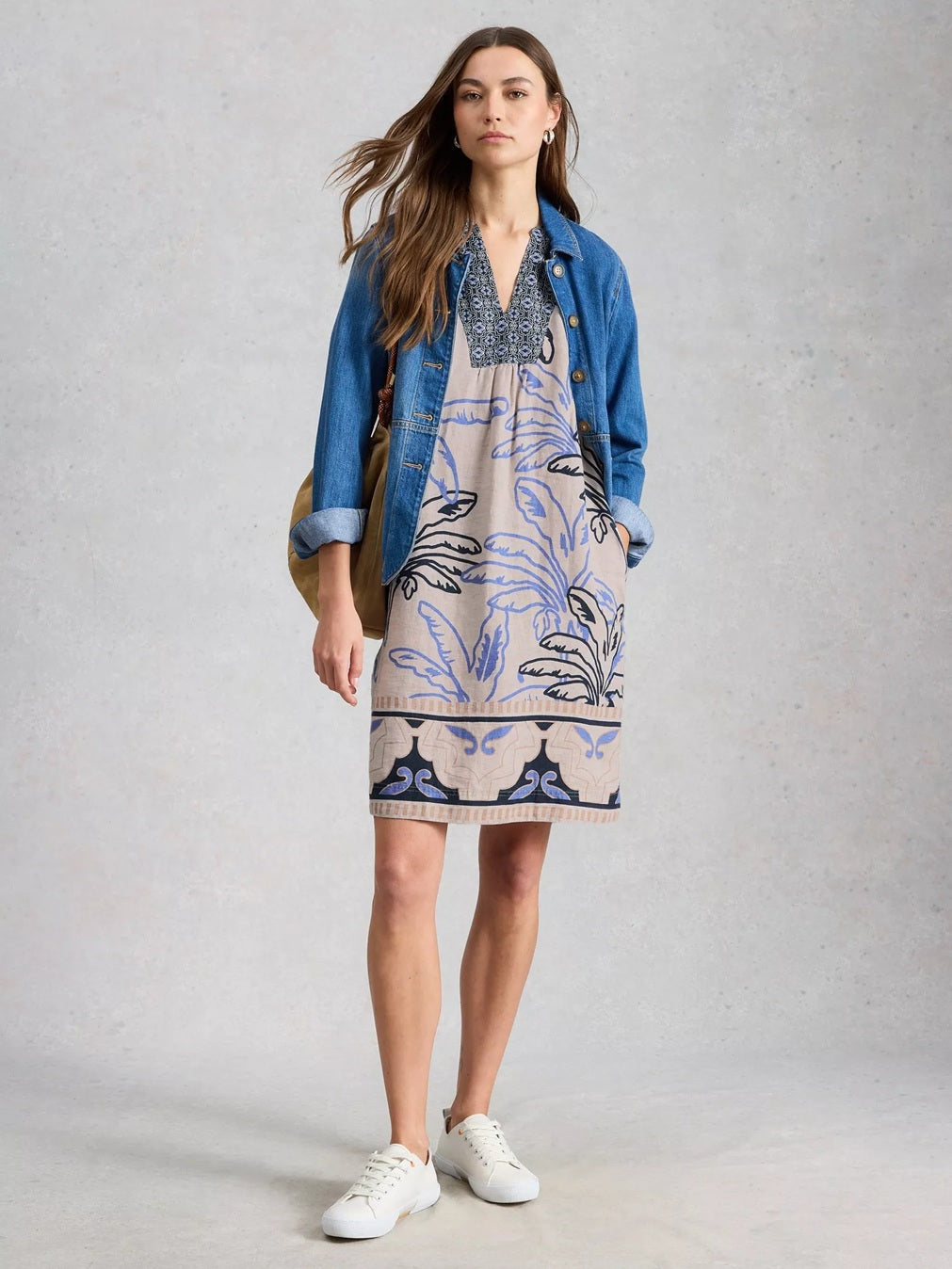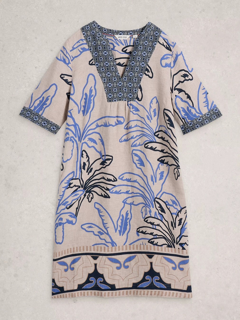 Style Details: The Ash Linen Dress in Ivory MLT brings instant big‑print energy with a breezy, effortless feel! Made from 100% linen, it’s naturally lightweight and perfect for warm days, featuring a notch neckline, short sleeves, falling above the knee. It is the kind of throw‑on style that does all the work for you—just add sandals and a denim jacket and you’re out the door!